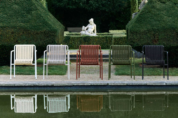 Deze collectie verzacht de look van de Palissade collectie met handgeweven koord van gerecycled polyester op een stalen frame met poedercoating. De serie bestaat uit een eetkamerstoel, eetkamerbank, loungestoel, loungebank en chaise lounge en biedt een ontspannen esthetiek die ideaal is voor sociale buitenruimtes.