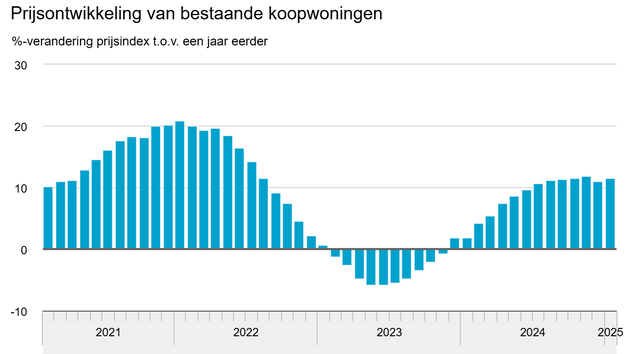 In januari 2025 waren de prijzen van bestaande koopwoningen gemiddeld 11,5 procent hoger dan in januari 2024. Ten opzichte van december 2024 stegen de prijzen in januari gemiddeld met 1,6 procent. De prijsontwikkelingen in dit bericht zijn gebaseerd op de prijsindex van bestaande particuliere koopwoningen in Nederland van het CBS en het Kadaster.