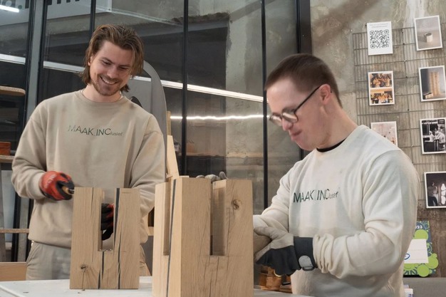 De broers Friso (28) en Mats (26) van Dijk richtten ruim twee jaar geleden Maak Inclusief op, een combinatie van een meubelmakerij en een gecertificeerd zorgbedrijf. Het initiatief biedt jongeren met een mentale beperking een kans om ambachtelijke vaardigheden te ontwikkelen en zelfstandig te werken.
