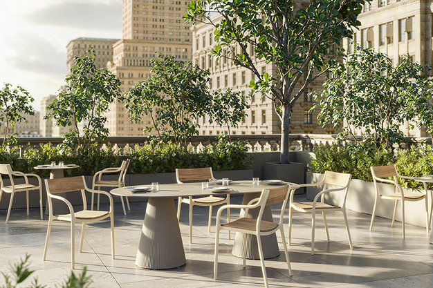 Vondom drukt zijn stempel op de contractwereld met een veelzijdige collectie van Eugeni Quitllet. Madison, een stoel geboren uit de dynamische hartslag van Manhattan, haalt inspiratie uit de energie van een New Yorkse avenue - een plek waar geschiedenis en moderniteit in perfecte harmonie samenkomen. Een eerbetoon aan de steeds veranderende geest van de stad en haar onmiskenbare levensstijl.