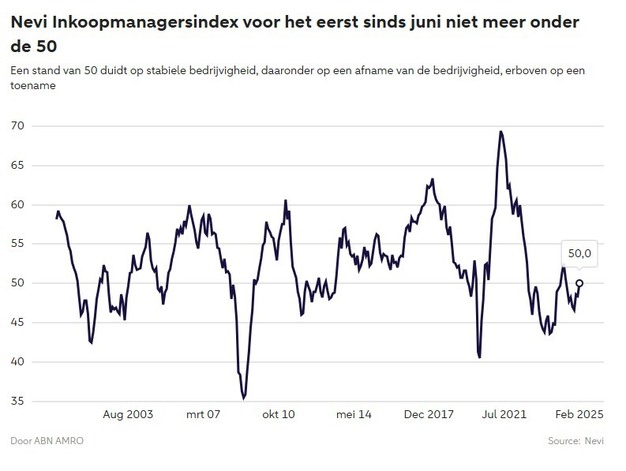 Het herstel is wel onzeker door het grillige gedrag van Donald Trump. Respondenten van de Nevi Inkoopmanagersindex hadden tot en met 20 februari de tijd om vragen te beantwoorden. Op 10 februari voerde Trump al een importheffing van 25 procent in op staal en aluminium. Op woensdag 26 februari maakte de Amerikaanse president echter ook bekend importheffingen van 25 procent op andere Europese producten te willen invoeren. In zijn eerste termijn als president deed Trump soortgelijke uitspraken, maar na onderhandelingen met de Europese Commissie in 2018 gingen de meeste aangekondigde heffingen uiteindelijk niet door.