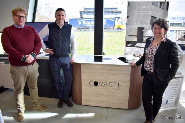 "Covarte is actief in de bewerking en afwerking van XXL keramisch platenmateriaal tot de meest creatieve ontwerpen", vertelt Alexander Viaene, die samen met Dominique Van 't Westeinde en Loïc Hardy acte de présence gaf.