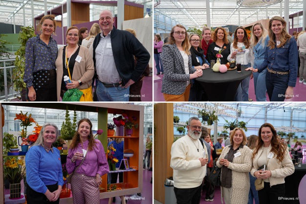 V.l.n.r met de klok mee: Miranda Rijsdijk en Lucas Jansen (FlowerAcademy.nl) en in het midden Esmee van Beem (Hamiplant); Een aantal dames van (bedrijven van) de Dutch Flower Group; Romeo Sommers, Yvonne Watzdorf en Karin van der Eijk; Carmen Brouwers en Tamara Chaloulakos van Bloemenbureau Holland. Bekijk hier de fotoreportage.