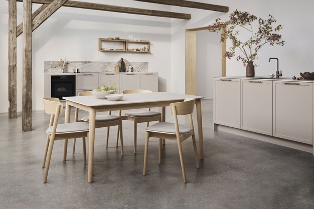 De KvikLiving-collectie is ontworpen volgens de Deens designprincipes: eenvoud, elegantie en functionaliteit. "Net zoals bij onze keukens, badkamermeubels en garderobekasten staat een harmonieus totaalplaatje centraal," legt Johnsen uit. "Zo hebben we onze eettafels en stoelen in precies dezelfde kleurstellingen ontworpen als onze keukens, zodat ze naadloos op elkaar aansluiten. Voor wie graag combineert, is er ook volop ruimte om materialen en kleuren te mixen, helemaal naar wens van de klant."