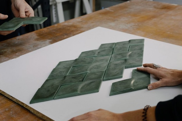 Designstudio Novel Grey is gespecialiseerd in het omzetten van industrieel betonafval in duurzame wandtegels, waarbij de CO₂-uitstoot tot wel 76% wordt verminderd ten opzichte van traditionele tegelproductie. Tijdens de ROOTS-presentatie (8 april - 13 april) toont de studio nieuwe ontwerpen, samen met andere Nederlandse en in Nederland gevestigde bio-based en circulaire pioniers zoals Piet Hein Eek, Claudy Jongstra en Tomáš Libertíny.