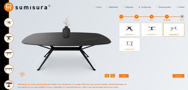 De productconfigurator van Sumisura blijkt een belangrijke stap voorwaarts in het bieden van een gepersonaliseerde klantervaring. Jochem legt uit: "De productconfigurator is een voortdurend proces. Wanneer er nieuwe HPL-kleuren beschikbaar komen, voegen we deze toe aan de tool, zodat klanten steeds weer nieuwe keuzes kunnen maken. Momenteel zien we vooral veel belangstelling voor tafels in bootvorm en Deens ovale vormen. Daarnaast zijn de kiezelvorm en paperclipvorm in opkomst."