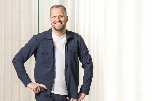 In zijn kenmerkende klusoutfit legt hij de laatste hand aan de nieuwe locatie, die hij samen met zijn team van zeven medewerkers runt. "We hebben alles gestript, wat je nu ziet is volledig onze signatuur. Van goed tot gek, maar altijd met kwaliteit voorop."