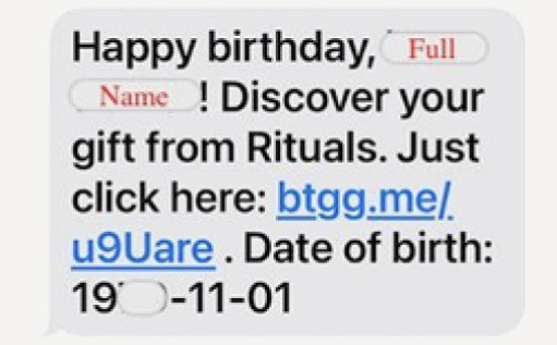 "Helaas doen oplichters zich voor als Rituals. Zij sturen nep berichten rondom je verjaardag via e-mail of sms. Vervolgens vragen de oplichters om geld over te maken. Als je zulk soort berichten ontvangt, klik dan nergens op en maak nooit geld over", laat Rituals haar klanten weten.