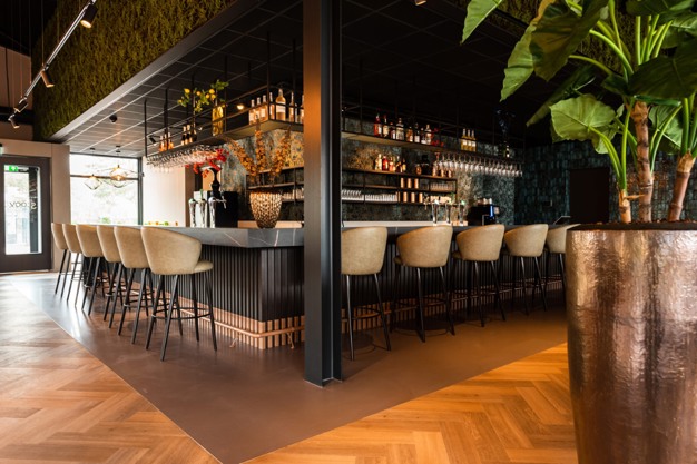 Bar voor Brasserie & Loungebar De Stoov, gerealiseerd door De Interieurbouwers.