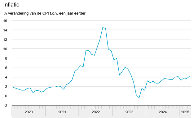 Bij de snelle raming was de inflatie in april 4,1 procent, meldt het CBS. Deze raming is berekend op basis van nog onvolledige brongegevens. In maart was de inflatie 3,7 procent.