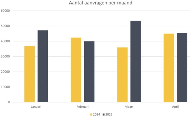 De hypotheekmarkt verloopt dit jaar wat grillig. In januari en maart 2025 nam het aantal hypotheekaanvragen met respectievelijk 28% en 48% toe ten opzichte van 2024, mede door de impact van rentestijgingen. Er waren die maanden relatief veel Oversluiters actief. In februari en april waren de aantallen hypotheekaanvragen vergelijkbaar met 2024.