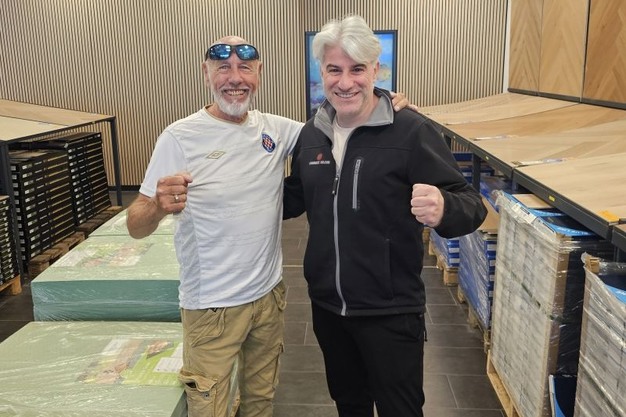 Groot bezoek bij Tasba Floors. "Deze week hadden we niemand minder dan Thom Harinck bij ons op bezoek. Een levende legende in de wereld van kickboksen én een man met oog voor kwaliteit", laat het vloerenbedrijf weten. Thom Harinck is een Nederlandse trainer-coach van topkickboksers, en samen met Jan Plas een van de grondleggers van het kickboksen in Nederland.