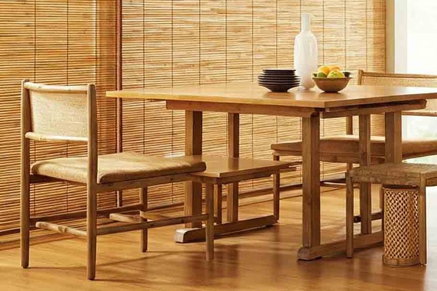 - Meubilair: stoelen, tafels, kasten en rekken worden vervaardigd uit bamboestokken of -platen, vaak in combinatie met staal of andere natuurlijke materialen.