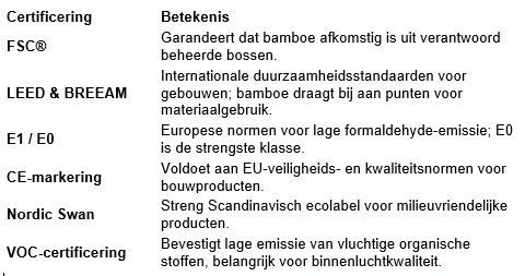 Overzicht certificeringen en keurmerken voor bamboeproducten