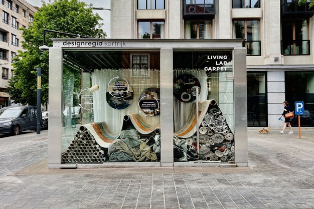 Weet jij hoeveel tapijt er in België jaarlijks op de afvalberg of in de verbrandingsoven belandt? In de KIOSK van Designregio Kortrijk vraagt het Living Lab Carpet deze maand aandacht voor deze problematiek, en gaat hier vooral ook mee aan de slag. Het project ontwikkelt circulaire oplossingen rond hergebruik, herstel en ecodesign in samenwerking met Material Mastery en ontwerpers Leda Devoldere en Cas Moor.