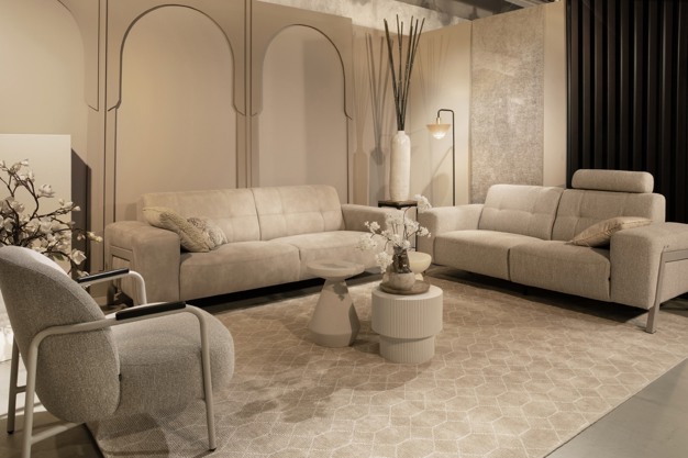 En dat is nog lang niet alles. Maxfurn presenteert ook een nieuwe collectie bankstellen. Personalisatie staat hierbij centraal: klanten kiezen hun favoriete model, opstelling en stof, die ze kunnen combineren met één van de zeven metaalkleuren voor het onderstel.
