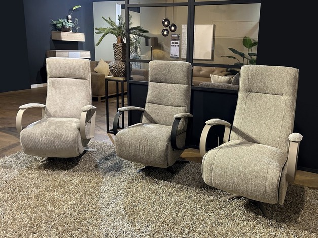 Uiteraard is er een grote verscheidenheid aan bekledingstoffen en leer, waarbij de klant, net als bij het Harmony bankenconcept, een eigen combinatie kan maken met één van de zeven metaalkleuren voor zowel de armleuning als het draaibare onderstel. Last but not least: de klant kan kiezen voor manueel verstelbaar, twee motoren met accu of het maximale comfort van een sta-op functie.