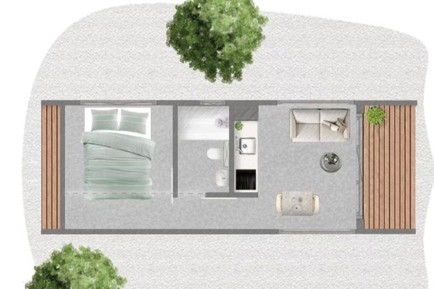 De compacte woning heeft een woonoppervlak van 32 vierkante meter en is geschikt voor twee tot vier personen. Het beschikt over een moderne keuken met inbouwapparatuur, een ruime woonkamer, een volwaardige badkamer en een aparte slaapkamer. Boven de badkamer bevindt zich extra opbergruimte.