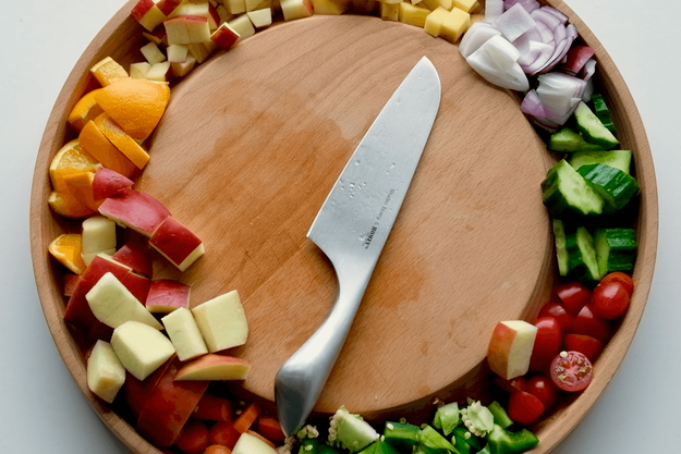 Een mooi gerecht bereiden begint met een stevige snijplank. De Sensory Cooking snijplank is robuust en stabiel, met een tactiel oppervlak voor extra grip en controle. De vormgeving voorkomt dat ingrediënten van de plank glijden, terwijl de opstaande randen helpen bij het geleiden van het mes en het verzamelen van gesneden producten. De open ruimte aan de onderkant is speciaal ontworpen om je mes veilig op te bergen.