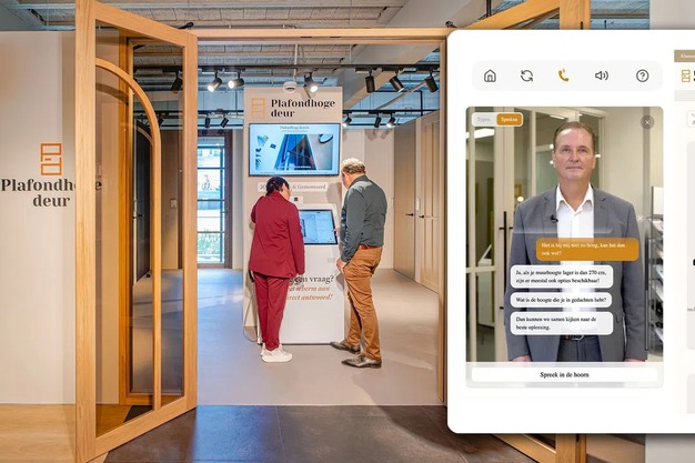 In Gouda heeft Plafondhogedeur.nl een innovatieve stap gezet met de opening van de eerste onbemande showroom van Nederland. Klanten worden hier niet geholpen door een medewerker van vlees en bloed, maar door een digitale adviseur: Joost. Deze AI-verkoper begeleidt bezoekers bij het kiezen van plafondhoge deuren, van stijl en maatvoering tot het plaatsen van de bestelling.