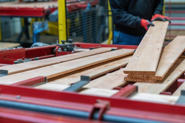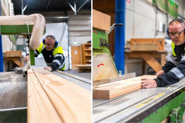 De werknemer van Woodvision B.V. hard aan het werk in de machinaal.