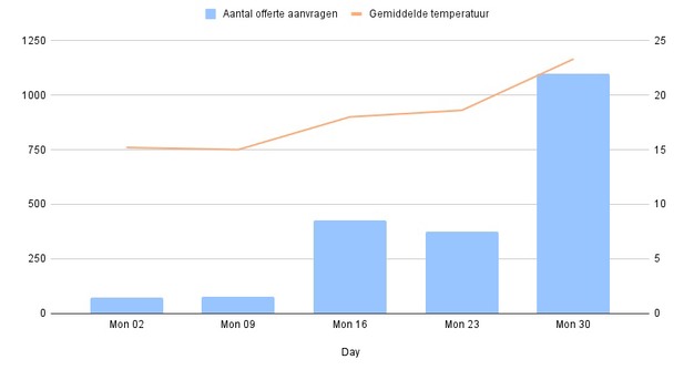 Aantal offerteaanvragen en gemiddelde temperatuur
