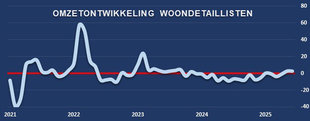 Woonwinkels (winkels in meubels, verlichtingsartikelen en artikelen voor woninginrichting met een algemeen assortiment) noteerden in mei een groei van de omzetwaarde van 2,7 procent ten opzichte van dezelfde periode een jaar eerder volgens het CBS. De omzetgroei werd volledig veroorzaakt door een hoger prijsniveau. Het verkoopvolume daalde met 0,4 procent.