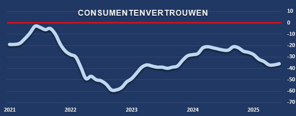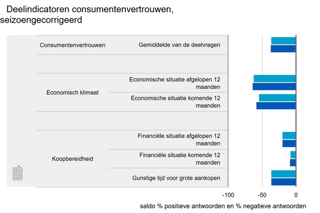 Het vertrouwen van consumenten was in juni een fractie minder negatief, meldt het CBS. Het consumentenvertrouwen kwam in juni uit op -36. In mei was dat -37. Consumenten waren in juni wat minder negatief over de economie dan in mei.