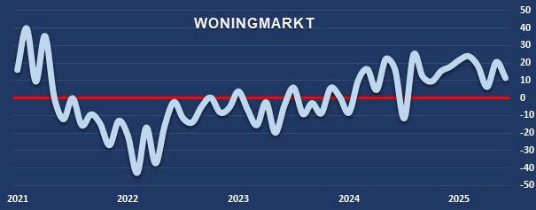 In mei 2025 zijn er volgens cijfers van het CBS en het Kadaster 19.614 bestaande koopwoningen verkocht. Dat is 11,5 procent meer dan in dezelfde periode een jaar eerder. Ten opzichte van de maand april zijn er 3,7 procent meer bestaande koopwoningen verkocht in Nederland. De deelindicator van de woningmarkt is van 20,6 gedaald naar 11,5. Daarmee is de stand van de deelindicator over de woningmarkt nog altijd de meest positieve deelindicator van de woonbranche economische barometer.