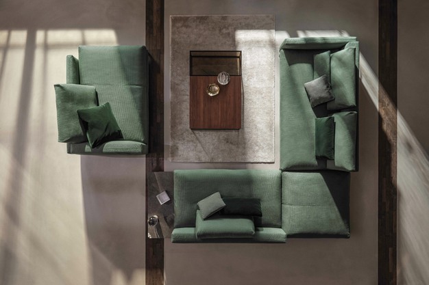 Deze bank is opgebouwd uit meerdere elementen. Ieder deel van het modulaire systeemprogramma Nuvola staat op vier poten en kan naar wens zowel vrijstaand als gekoppeld worden gebruikt. Nuvola biedt zitelementen in verschillende afmetingen, met en zonder armleuningen, evenals gestoffeerde banken zonder rugleuning. Indelingen kunnen zo op elk gewenst moment worden gewijzigd en afgewisseld. Bijpassende tafeltjes zorgen voor een transparante ruimtearchitectuur.