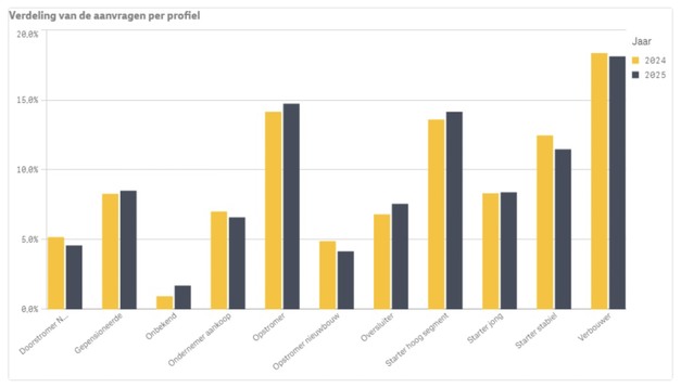 Ook de niet-kopersmarkt groeide met 20%. Hypotheekverhogingen waren het populairst, goed voor 41.363 aanvragen. Deze verhogingen worden vaak gebruikt voor woningverbetering. Met ruim 25.000 aanvragen vormen de Verbouwers het grootste klantprofiel binnen dit segment.