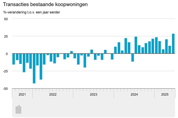 Het Kadaster maakte bekend dat het in juni 18 883 woningtransacties registreerde. Dat is bijna 29 procent meer dan een jaar eerder. In het eerste halfjaar van 2025 zijn 108 886 woningen verkocht, bijna 18 procent meer dan een jaar eerder.