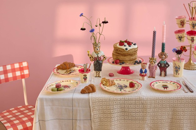 De serie is aangevuld met bloemenpatronen, een eerbetoon aan Nathalie's kenmerkende botanische wereld en haar vermogen om simpele momenten om te zetten in visuele poëzie. Deze ontwerpen zijn niet zomaar servies, het zijn fragmenten uit een grillige wereld, bedoeld om ontdekt, geliefd en gedeeld te worden. Elk item vertelt zijn eigen verhaal en samen nodigen ze je uit om het alledaagse met nieuwe ogen te bekijken.