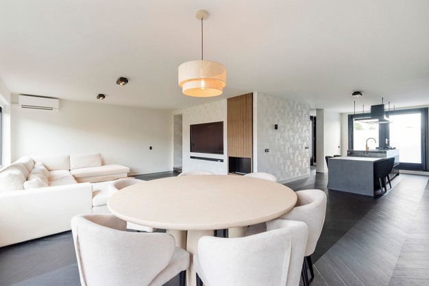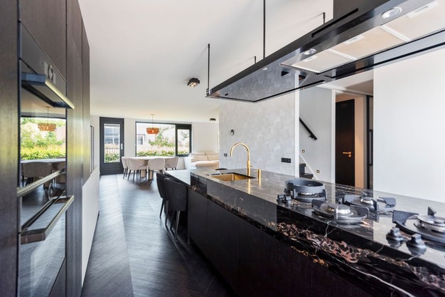De keuken is volledig uitgerust met moderne inbouwapparatuur en een ruim kookeiland. Daarnaast is de woning voorzien van vloerverwarming. De slaapkamer heeft een luxueuze uitstraling en is uitgerust met een bubbelbad, een royale inloopdouche met regendouche en ingebouwde kranen, plus een apart toilet. Ingebouwde televisies dragen bij aan het comfort en de ontspanning.