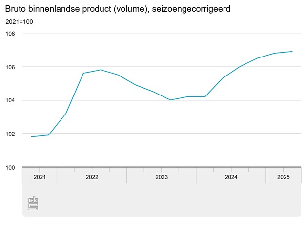 Volgens de eerste berekening van het CBS is het bruto binnenlands product (bbp) in het tweede kwartaal van 2025 met 0,1 procent gestegen ten opzichte van het eerste kwartaal. De stijging van het bbp in het tweede kwartaal is vooral toe te schrijven aan de investeringen en de overheidsconsumptie.