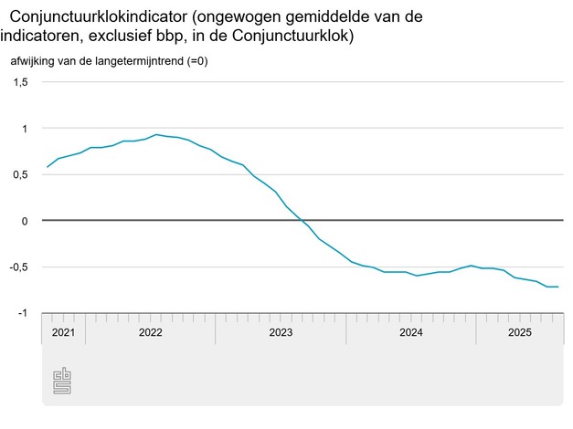 Het conjunctuurbeeld volgens de Conjunctuurklok van het CBS was in augustus net zo negatief als in juli. In de Conjunctuurklok van augustus presteerden 11 van de 13 indicatoren slechter dan hun langjarige trend.