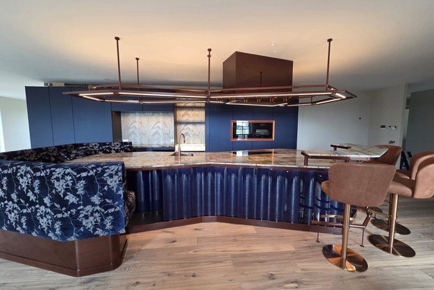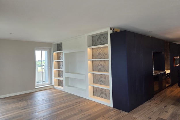 TKStudio Lisse heeft onlangs een compleet interieurproject afgerond in een nieuwbouwappartement met bijzondere vormen. Eigenaar Marc Smulders benadrukt dat de vrije indeling van de woning de mogelijkheid bood om een maatwerkoplossing te creëren die zowel functioneel als esthetisch sterk uitpakt.