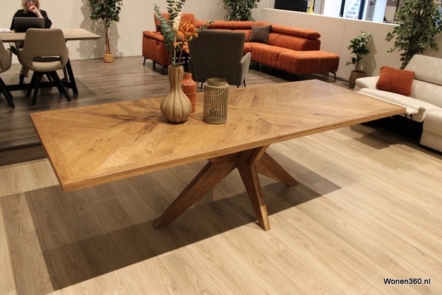 Deze eiken tafels worden in Roemenië gemaakt. "we hebben bewust voor deze modellen gekozen om onze klanten de ambachtelijke skills van deze producent te laten zien", aldus Wiebe. Wat tegenwoordig echt een trend is, zijn grote tafels. Thuis speelt het leven zich af aan de lange tafel; met familie en vrienden lekker eten en drinken is de nieuwe norm.