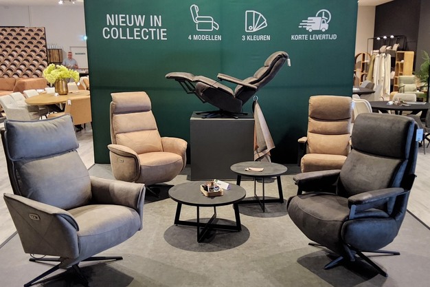 De nieuwe relaxfauteuils zijn verkrijgbaar in eigentijdse stoffen en bieden keuze uit twee lijnen: een hoogwaardige Europese collectie op bestelling (met een levertijd van 8 tot 10 weken) en een relaxfauteuil collectie die uit voorraad leverbaar is. Zo spelen wij in op de verschillende wensen. Ook de luxere eetkamerstoelen met vele mogelijkheden trokken de aandacht.