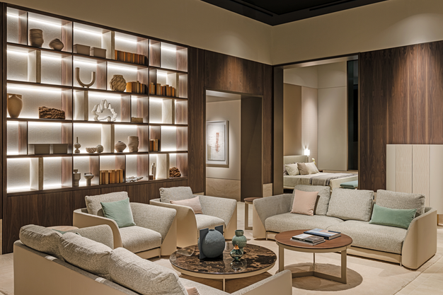 Turri vertaalt de slaapomgeving door naar de woonkamer met de Joel-collectie, ontworpen door Marco Acerbis. De sofa sluit aan bij de overvloedige, omhullende vormen van het Joel-slaapgedeelte en biedt een hoog comfortniveau, terwijl de stevige structuur behouden blijft.