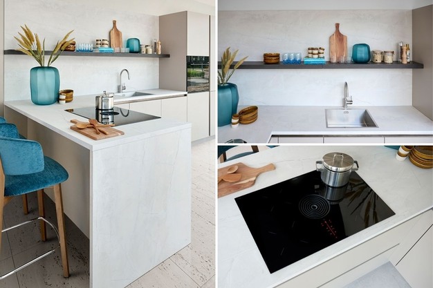 Naast neutrale tinten winnen warme aardetinten, zachte groenen en diepe blauwen terrein. Combinaties van gladde en ruwe, matte en glanzende oppervlakken geven keukens meer gelaagdheid. Fronten met groeven, werkbladen met reliëf en bijzondere grepen zorgen voor extra tactiliteit.
