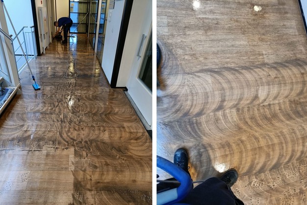 Ook Jeroen Scholten, eigenaar van een woning- en projectstofferingsbedrijf, sluit zich daarbij aan: "Regelmatig vochtig dweilen met de juiste middelen is voldoende. Ik ben er geen voorstander van dat vloeren met veel water worden schoongemaakt."
