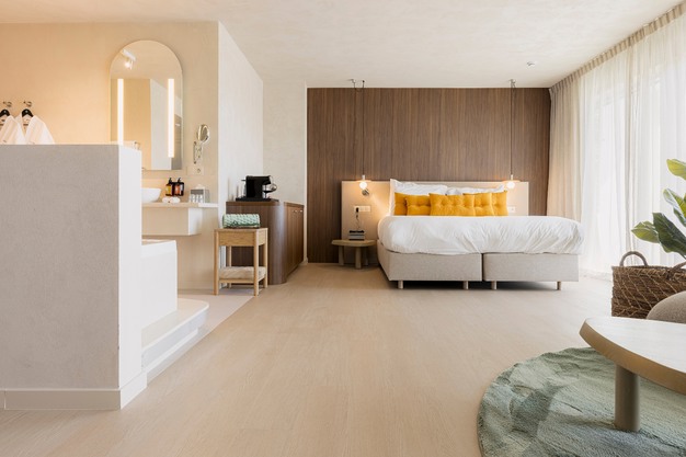 De selectiecriteria voor de vloeren waren dus veeleisend. Enerzijds moesten ze de warmte van het concept versterken, maar anderzijds ook bestand zijn tegen de hogere gebruiksintensiteit. Daarnaast dienden ze geschikt te zijn voor kamers waar huisdieren welkom zijn, wat extra eisen stelt aan slijtvastheid en onderhoudsgemak.