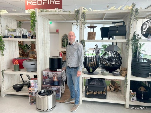 Eigenaar van Outtrade BV René Dijkman bij zijn Redfire en WooH collectie in de showroom in Nieuwleusen.