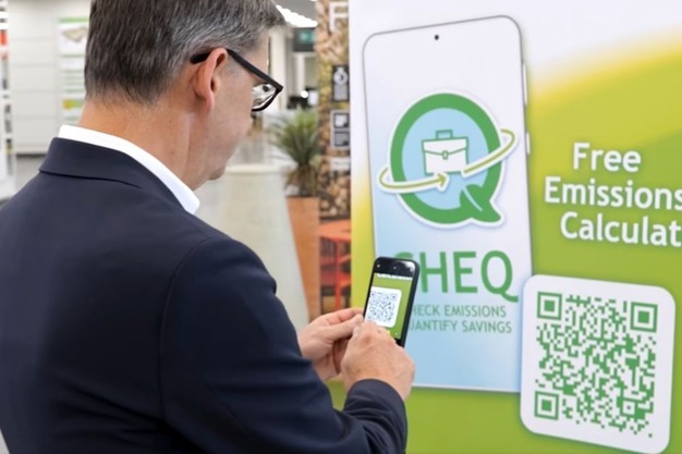besparing tijdens een beursbezoek kunnen berekenen. De toepassing, CHEQ, vergelijkt de uitstoot van één geconsolideerde beursreis met de emissies van meerdere afzonderlijke zakenreizen die door het bezoek worden vervangen.