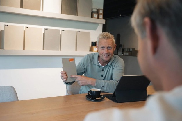 Zijn zoon sloot zich aan bij het bedrijf, waarna een nieuwe koers werd ingezet. "We zijn toen een webshop gestart. Mensen kunnen online stalen aanvragen, die wij toesturen. Daarna bellen we ze op, vaak volgt dan een showroombezoek of een advies aan huisbezoek. In de auto heb ik altijd voorbeeldborden bij me, dus het gesprek is al warm."