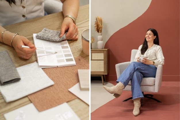 "Een bank kopen moet net zo relaxed zijn als erop zitten", zegt Mandy Windhouwer, styliste bij Rebellenclub. "Daarom hanteren we één vaste prijs voor al onze modellen, inclusief keuze uit meer dan 150 stoffen. Alles wordt in Europa gemaakt, met hoge kwaliteit en snelle levertijden."