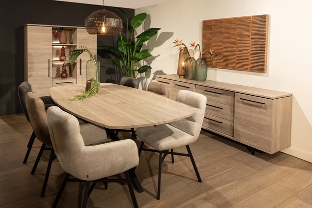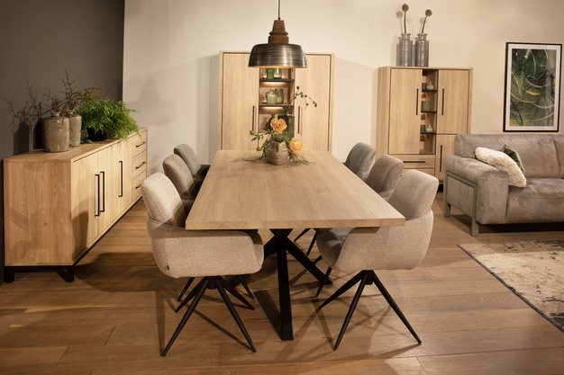 Daarnaast toont Maxfurn een uitgebreide collectie eetkamerstoelen, variërend in model, prijspunt en stofmogelijkheden. Het Wellington-tafelconcept met bijpassende configurator blijft een publieksfavoriet en is uiteraard ook op de beurs te zien. "Zo kunnen retailers hun klanten snel en overzichtelijk door het keuzeproces leiden, zelfs met een beperkte winkelruimte", legt Margot uit.