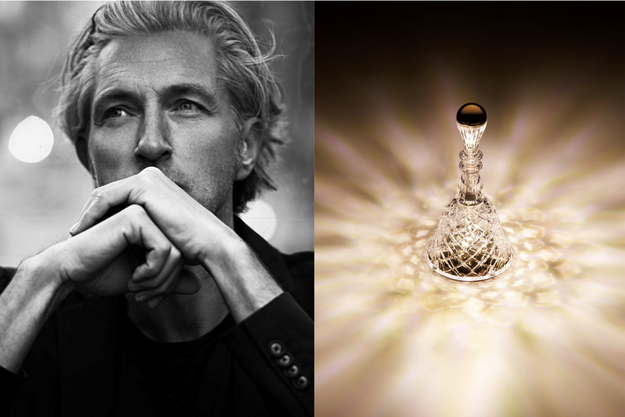 Designer Marcel Wanders met het Ramun lichtproduct.