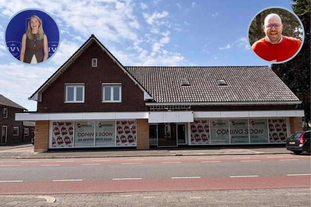 Het pand van MK Keukens en Inbouwapparaten. Inzet: Ylonca Martens (links), mede-eigenaar en Eloi Klomp, mede-eigenaar.